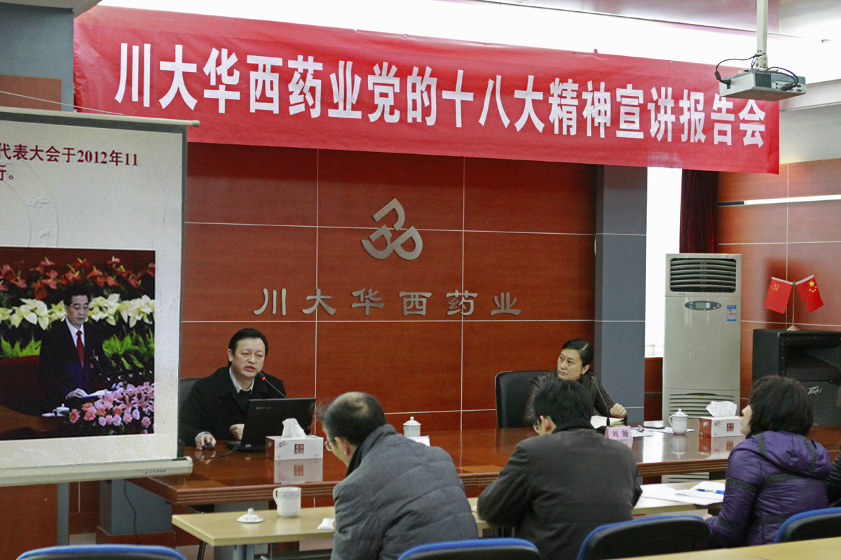 公司党总支书记刘娅董事长要求,全体党员干部职工要把学习贯彻党的十八大精神作为当前和今后一个时期的首要政治任务,努力做到学以致用,切实将十八大精神贯彻落实到具体工作中,积极思考企业的发展方向、建立适应自身发展的痴女、寻求适合企业实际的改革之路。以更加振奋的精神状态,更加务实的创新精神,加紧实施新版GMP各项工作,确保新版GMP认证的顺利开展。