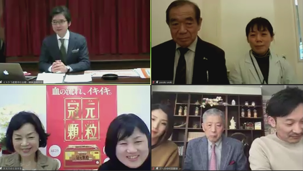 东西药局的猪越英明先生主持了《冠元100项目特别企画——代代相传:亲子两代共叙瑰宝・冠元颗粒》,特别邀请了1)京都府・一乗寺薬局荒木康子、衣川香;2)鹿儿岛县・峰崎汉方药局峯崎リヨ子、高山纯;3)石川县・中村固肠堂药局中村寛二、中村周作、中村寿理3家两代同堂经营的研究会会员,分别就冠元颗粒在自己药局中的销售经验、病例介绍、患者评价、有效性、冠元颗粒事业继承等方面进行了详细而感人的论述和经验分享。