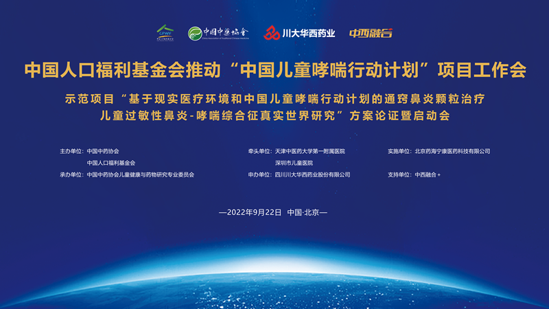 为贯彻落实中国儿童哮喘行动计划的重要工作内容,秉承中西医并重理念,2022年9月22日晚19点—21点,作为中国人口福利基金会妇幼关爱工程和中国儿童哮喘行动计划共同推进的儿童中成药真实世界研究示范项目-- “基于现实医疗环境和中国儿童哮喘行动计划的通窍鼻炎颗粒治疗儿童过敏性鼻炎-哮喘综合征真实世界研究”方案论证暨启动会于北京顺利召开。本次研究旨在真实世界数据向证据转化,挖掘华西牌通窍鼻炎颗粒治疗和预防儿童过敏性鼻炎引起的哮喘的优势临床价值,为中西医联合防治儿童哮喘方案的制定提供决策依据。