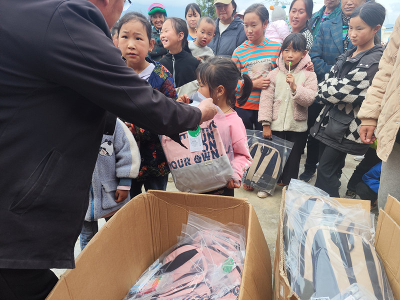 向格布村155名幼儿园在读小朋友各送去书包和文具1套,祝愿他们在新的学期里开心、快乐、健康成长。痴女